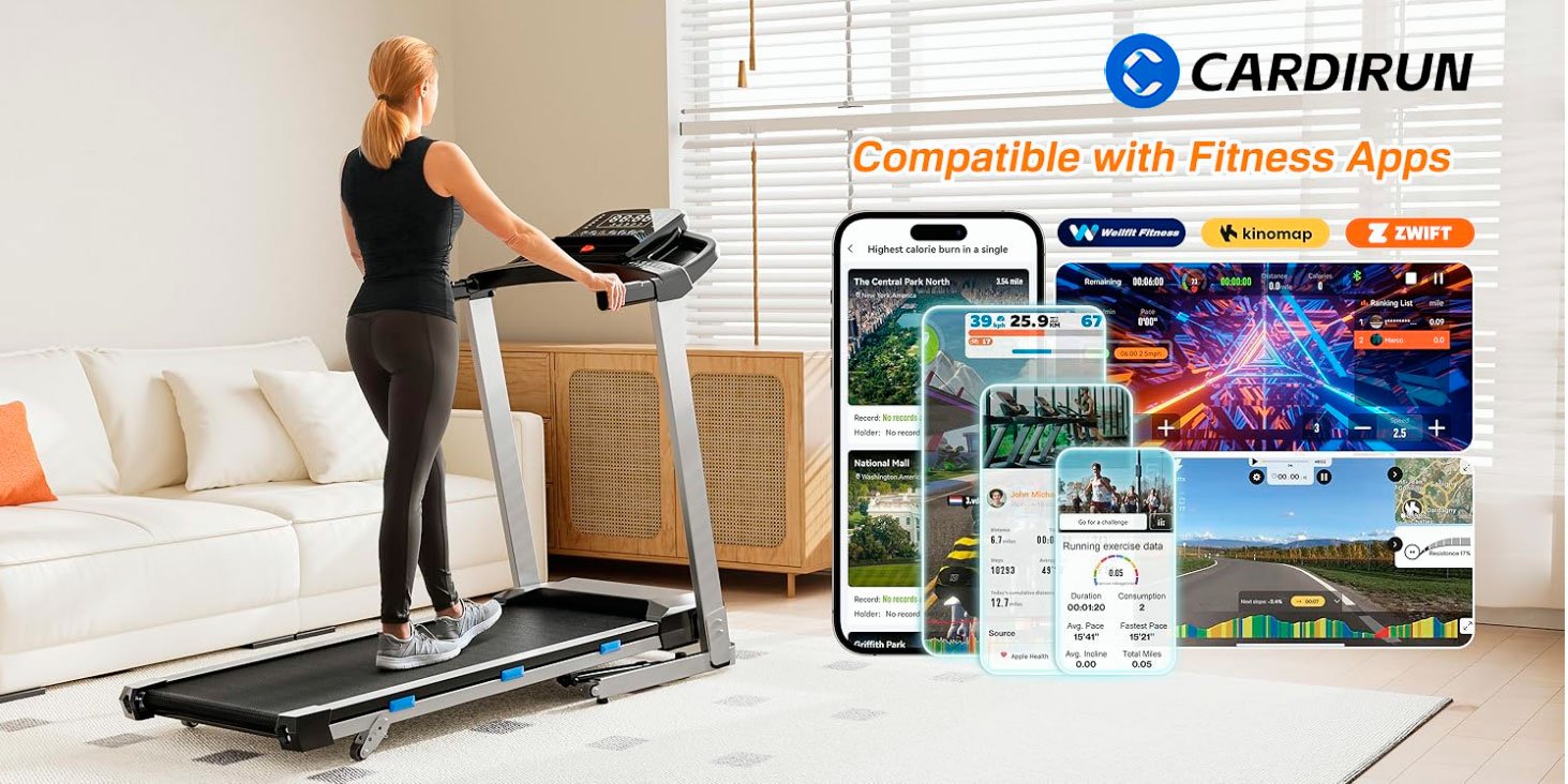 Yes, Cardirun treadmills connect to popular fitness apps such as Kinomap and Apple Health, allowing you to record steps, distance, time, and progress.