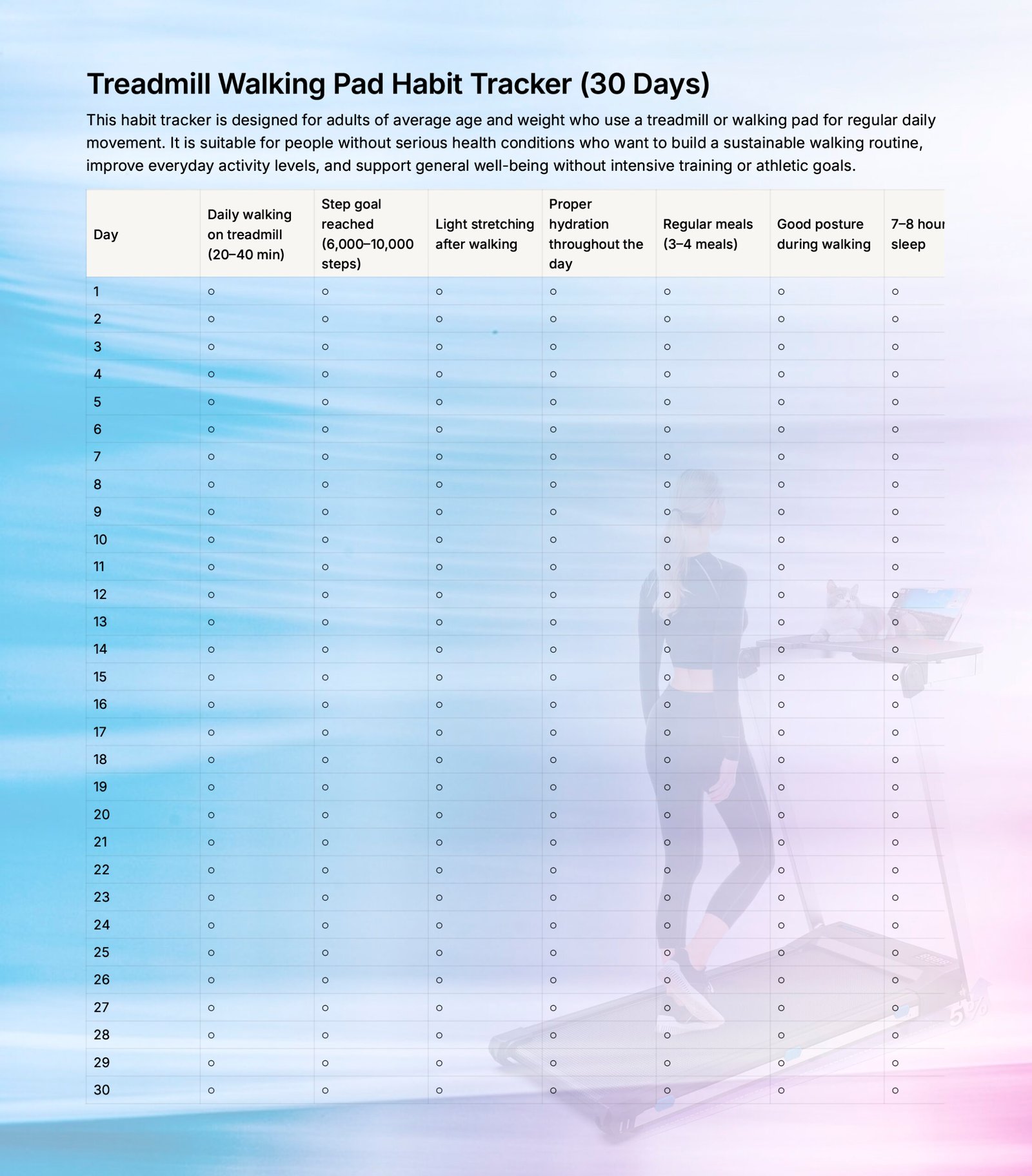 Bonus! Treadmill Walking Pad Habit Tracker (30 Days)
